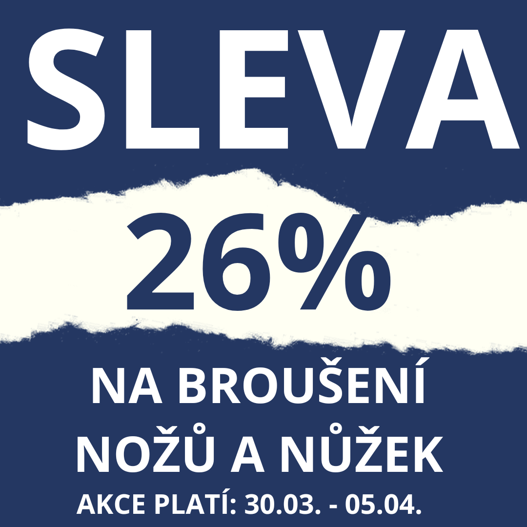 Akční nabídka je časově omezená, a právě proto neváhejte a využijte naši 26% slevu na broušení nožů a nůžek.